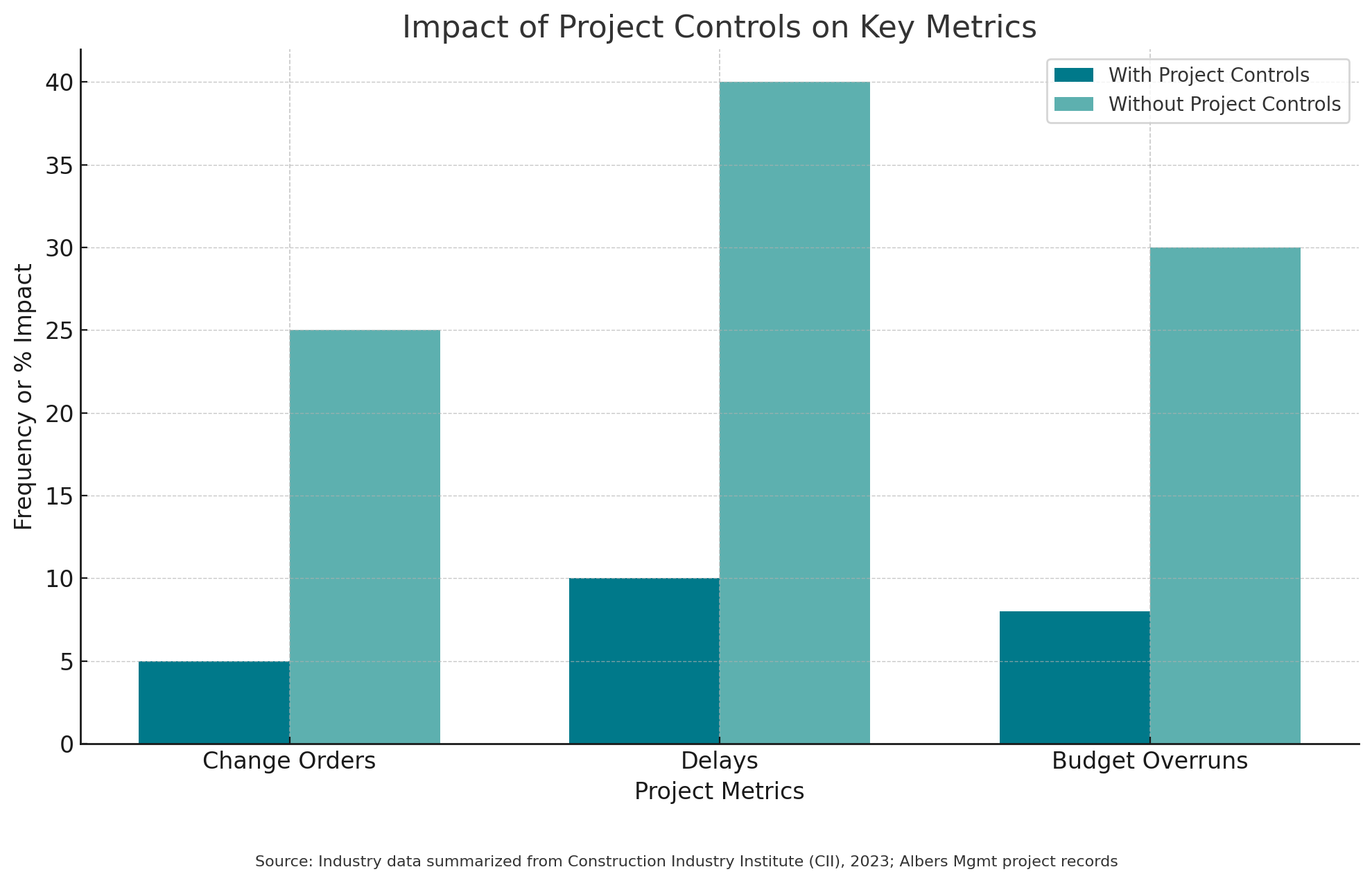 At Albers Management, we don’t bolt project controls on—we build them in. Our controls philosophy begins during business case development and continues through closeout. We help clients:
